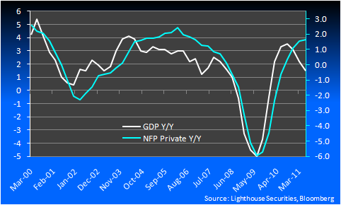 That gives some idea of just how sub-par this US recovery has been in the post-war era, especially given the extraordinary amount of stimulus. Next up, how GDP leads employment: