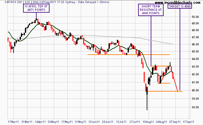 Once again, we are now only a 100 or so points off the previous bottom close on the 8th of August. There is a definite battle between the knife catching bulls and the red-tempered bears around the 4200 point mark.