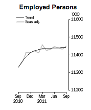ABS Labour Force data is out and shows .1% fall in unemployment to 5.2% in September. No doubt this will excite the bullish pundits, who, having spent the better part of a month trashing the data, will suddenly fall in love with it again. The key points are below: