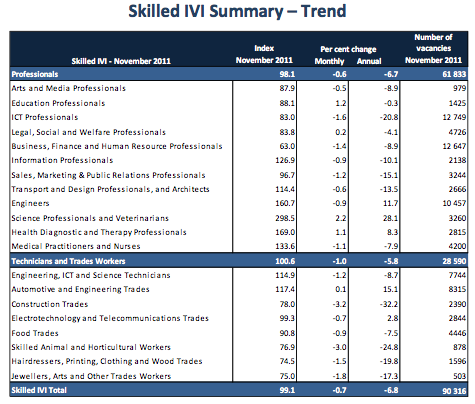 The DEEWR Skilled Vacancy report is out shows a bit of relief with a 5.4% rise in December, though the trend continued to fall: