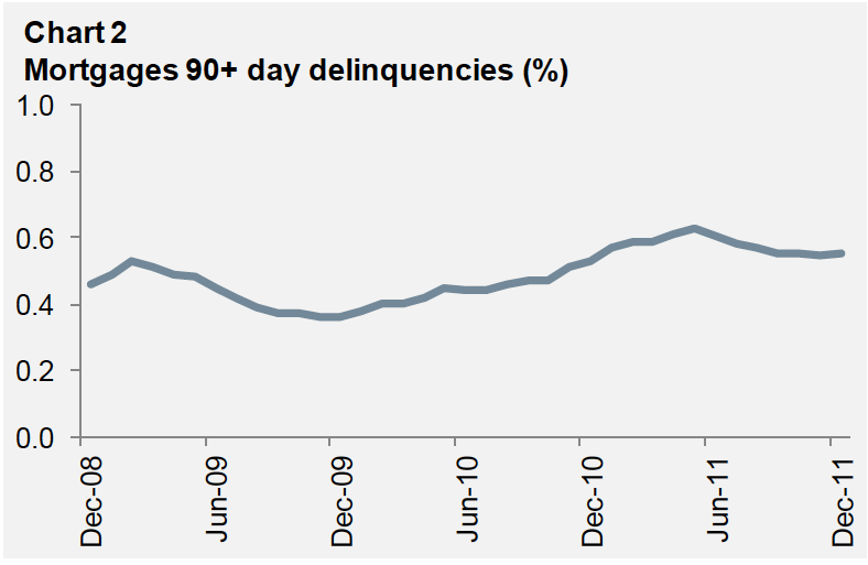 By time, 90 day plus arrears were unchanged over the quarter at 0.55% of the book, whilst 30 day plus are ticking up with a 0.16% increase to 1.4% “largely due to seasonal factors”.