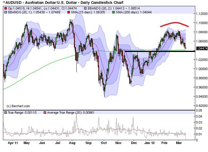 As it stood Sunday night, I will be stopped out for a small profit at 1.0628 should the Aussie rally up there on Monday. However, for the moment I am still short.
