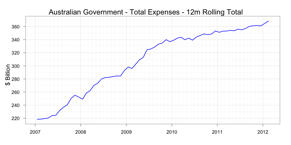 Unsurprisingly, given the automatic stabilizers and the need for stimulus, expenses have risen over the same period: