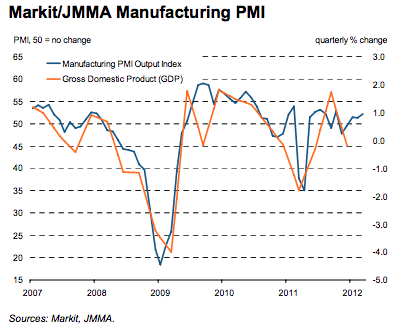 The good news continued in North Asia. Following yesterday’s official Chinese PMI, Japan, Korea and Taiwan all posted modest growth. Japan was up 0.6% to 51.1: