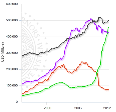 3. Red: Securitized consumer nonrevolving credit – this is mostly ABS.