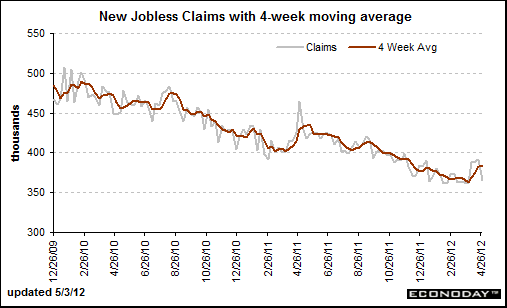 The takeaway here is look at the moving average, this is far too volatile a measure to cling on to (as some economists like to) and you also need to “look through” the numbers to participation rates – a growing number of Americans are just falling off the employment registries and giving up looking for work. Bingo, unemployment stays steady or goes down!