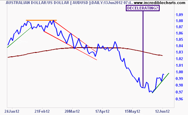 More shenanigans today, but this time on our own bourse, the ASX200 which was going fine leading into lunch then slumped unexpectedly – mainly financials and insurance stocks to blame – possibly on words emanating from the Great Captain of Banking Reserve, thereof as he spoke at PM Gillard’s economic forum? Anyways, it fell 9 points or 0.22% to 4063 points.