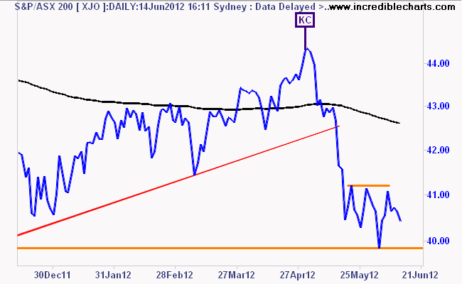 Its red across the screens today in Asia, as the ASX200 flops 21 points or just over 0.5% to 4042 points, although for context its been oscillating around this level since mid-May:
