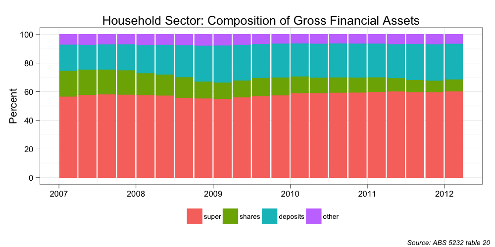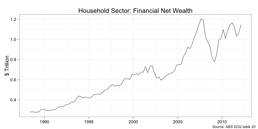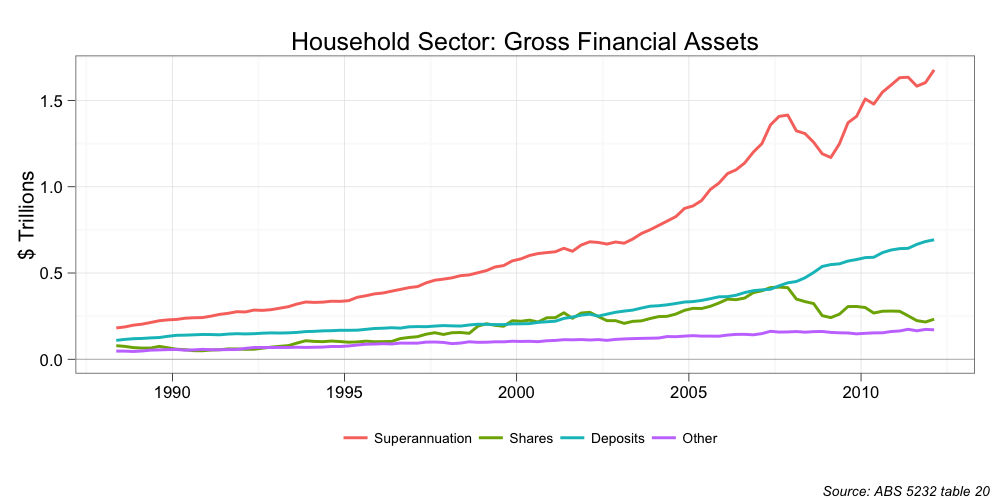 Today the ABS released the March quarter financial accounts. My favourite table in this series is the household sector.
