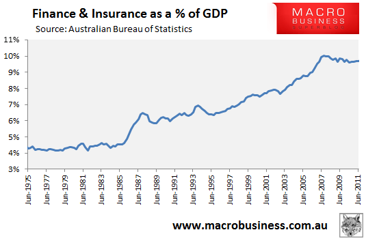Which helps to explain why the finance and insurance industries have been contracting relative to the rest of the economy after 20 years of strong gains: