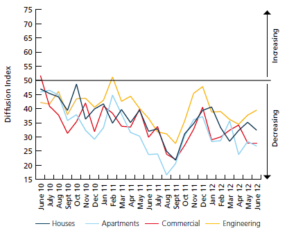The Australian Industry Group Performance of Construction Index (Australian PCI®) in conjunction with the Housing Industry Association registered 34.8 in June, just 0.1 points above the reading in May. The index has now remained below the critical 50 point level separating expansion from contraction for 25 consecutive months.