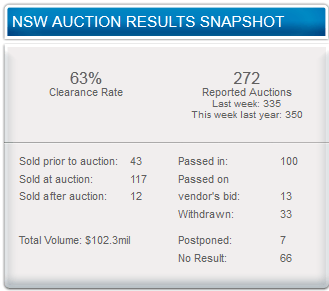 In New South Wales, the clearance rate of 63% was an improvement on last week’s 59%. However, auction volumes remain well down on ‘normal’ levels, with only 272 auctions reported over the weekend. This compares to 350 reported auctions last week and 350 auctions reported in the same weekend of last year.