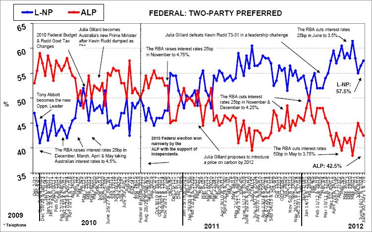 That’s a very nasty trend for Gillard. Even rate cuts appear to have stopped working to boost popularity.