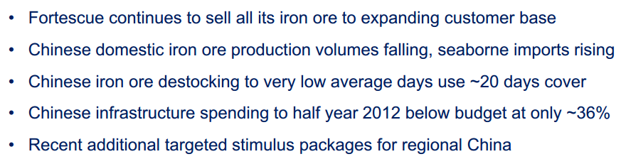 That’s the Fortescue assessment for iron ore prices. I know ore is going to bounce some time, perhaps soon, but this is ridiculously thin coverage of the primary risk facing the company.
