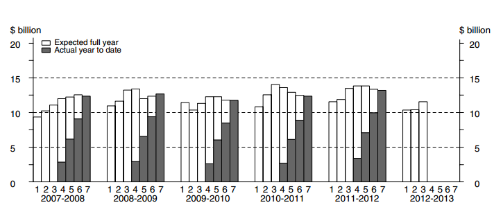 But in the projected capex estimates there is a hint that the mining boom peak is indeed approaching. Total projected capex for the country still rose nicely, north of $180 billion: