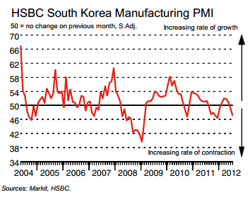 I’ve reported already on the less than stellar China PMI today. The other North Asian export powerhouses have also reported today and in the last 24 hours and the tune they are singing is a dirge not a ditty.