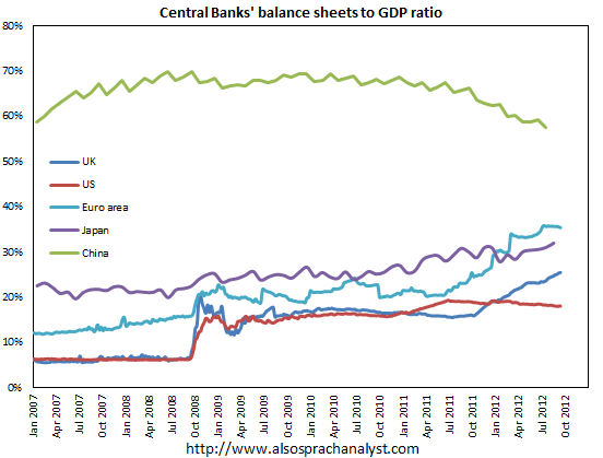 As we all know, the People’s Bank of China has been printing more than almost anyone else and for much longer so it should come as no surprise that once you add PBOC into the mix, it becomes the largest: