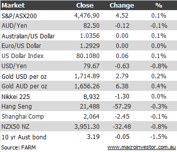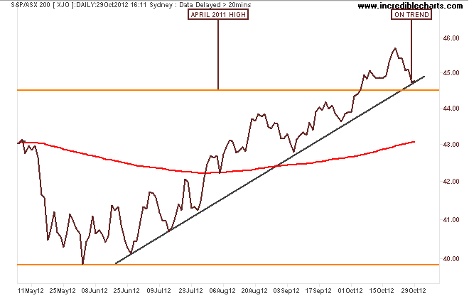 Amid the storm off the US east coast which will shut down markets there tonight and probably on Tuesday, Asian equity markets were quite subdued. The ASX200 closed up 4 points to 4476. I’ll take a closer look at the bottom of the post including technical analysis of the bourse.