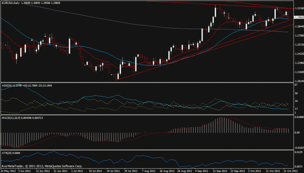 In FX markets, the euro came under pressure from the Spanish downgrades and the stock market swoon with the usual preference of traders for safe havens like the Yen and the US dollar knocking the single currency lower. From a high of 1.3075, the euro fell to a low of 1.2950 before rallying to sit at 1.2978 as I write. The technical set up is below but it seems that if the stock market sell off accelerates then it is fair to expect that the euro’s run has ended and its back toward the range low at 1.28 soon. It might be hard to fathom why poor stocks centered on poor US company earnings and outlook help the dollar but it’s all about liquidity and safety. For all its warts and flaws the US economy, its currency and its bonds remain the asset of last resort for global investors. Equally at times of trouble US investors take their money home which also puts a bid under the US dollar.