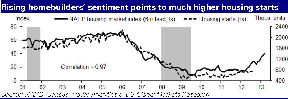DB: – Rising builders’ sentiment coupled with higher starts and faster retail sales tell us that the economy is unlikely to slow further and that overall growth may noticeably improve sometime next year if the fiscal situation is properly dealt with.