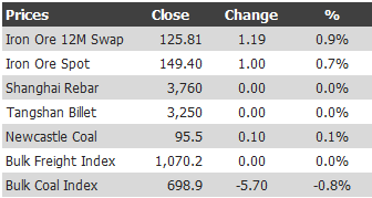 The recent pick-up in prices looks like last minute inventory adjustments, rather than a start of a rebound. That said, we remain upbeat on the outlook for iron ore from the second quarter, as further government stimulus and improving economic data confirms a better China growth outcome. We think spot prices will ultimately trade range-bound between USD130-150/t for 2013.