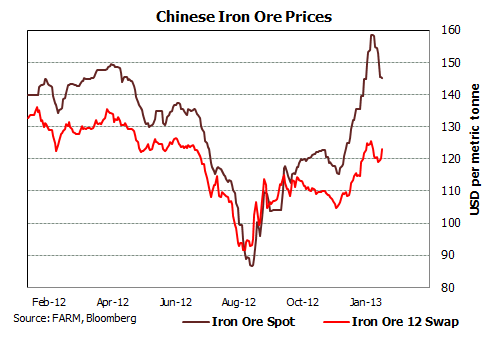 Find below the iron price complex price chart for January 18, 2013: