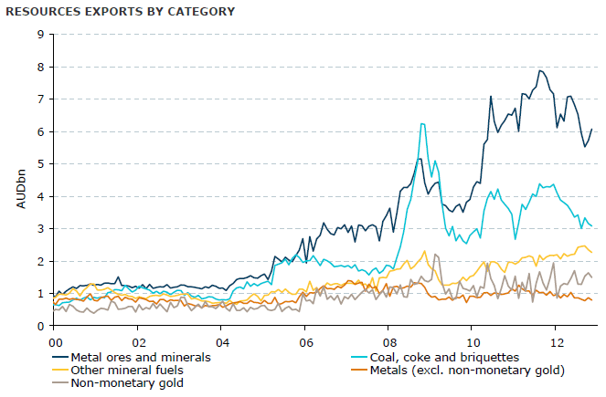 - The value of exports rose 1.2% m/m in November, a little less than we had expected but this was largely due to a steep 9% m/m fall in the volatile non-monetary gold component. Excluding this category, export values were up a healthy 2% m/m. Metal ores and minerals exports rose by a strong 6.2% m/m, in part due to higher iron ore prices on our reckoning, but coal and other resource exports declined. Manufacturing, rural and services exports all rose solidly in the month.