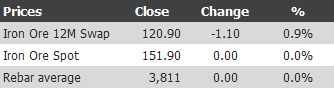 Spot is stuck and swaps fell, perhaps as Cyclone Rusty moved away from Port Hedland. I’ve shifted to rebar average prices so forgive the series break. Anyway, it fell marginally on the day, as did rebar futures, though they seem to bottoming: