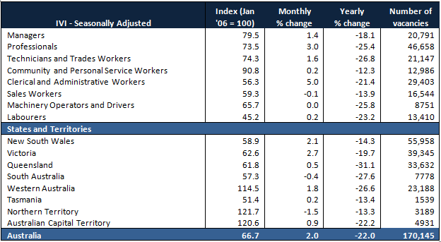 Good news from DEEWR today with the hints that we’ve seen in the ANZ job ad series that the current round of job shedding is slowing confirmed with a 2% rise in the comparable DEEWR survey for February.