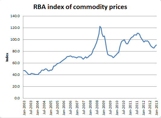Preliminary estimates for January indicate that the index rose by 2.6 per cent (on a monthly average basis) in SDR terms, after rising by 3.4 per cent in December (revised). The largest contributor to the rise in January was the increase in the price of iron ore, while the prices of base metals and rural commodities were broadly unchanged. In Australian dollar terms, the index rose by 2 per cent in January.
