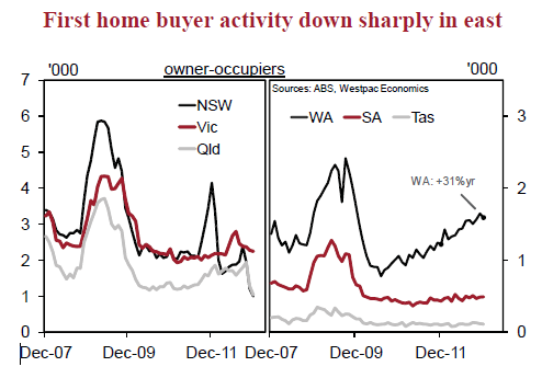 - The pulling of the First Home Owner Grant in NSW and QLD has demolished new market entrants. Victorian incentives also changed but not in so sudden a way.