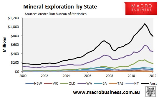 The Australian Bureau of Statistics (ABS) yesterday released Mineral & Petroleum Exploration data, which revealed a continued easing in mineral exploration expenditure following the peak levels recorded in the March quarter of 2012. By contrast, petroleum exploration expenditure surged to an all-time high over the quarter.