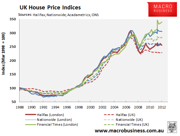 The perverse aspect about the UK situation is that while incomes are falling, UK house prices are once again on the rise, particularly in Greater London (see next chart).