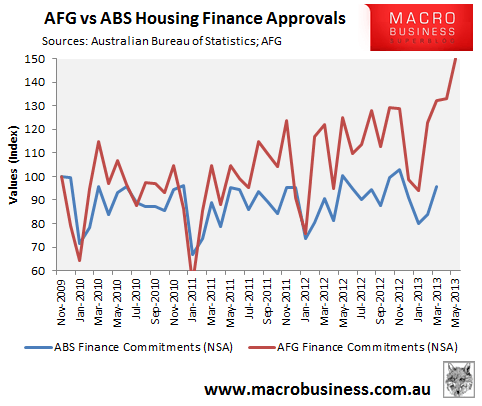 Therefore, while AFG is a useful guide as to the strength of mortgage demand, its results do not necessarily translate to the overall mortgage market as captured later by the ABS.