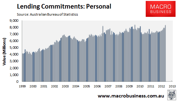 In seasonally-adjusted terms, the value of personal finance commitments rose by 5.2% over the month and was up by 15.6% over the year: