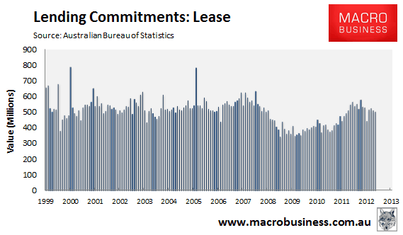 Finally, the value of lease finance commitments also fell by 1.5% over the month and were down by 8.2% over the past year: