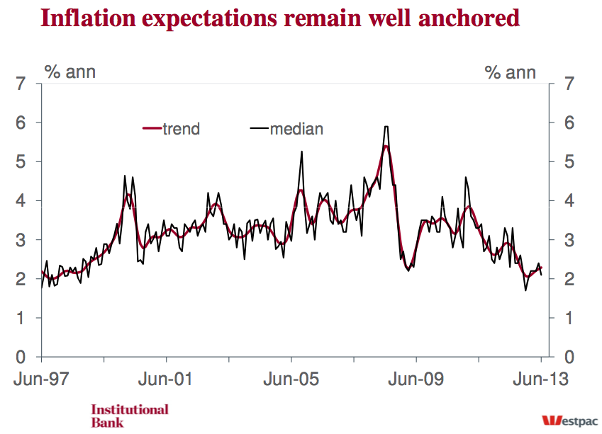 Westpac has released its May expectations pack and the news is good for inflation expectations: