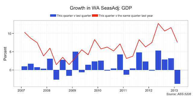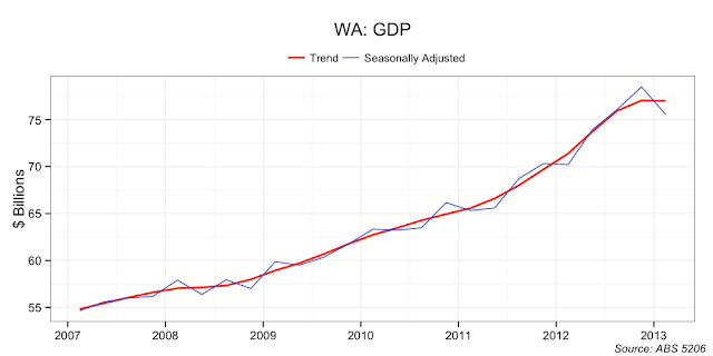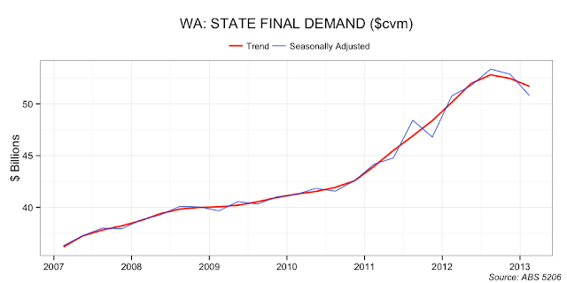Conclusion: you would want more data before firmly concluding that WA is in recession. However, the risks all look to be on the down side. I would not be surprised if in three months time a consensus had emerged that WA is indeed in the midst of a recession.