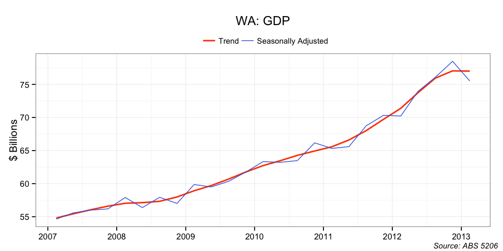 On this basis, one could argue that WA has only had one quarter of negative growth and, therefore, it is not technically in recession.
