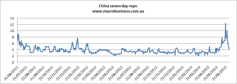 We can already see this happening in China’s now perpetually weak PMIs and producer prices. The recent spike in interbank rates (which have now returned to the normal range) is another example: