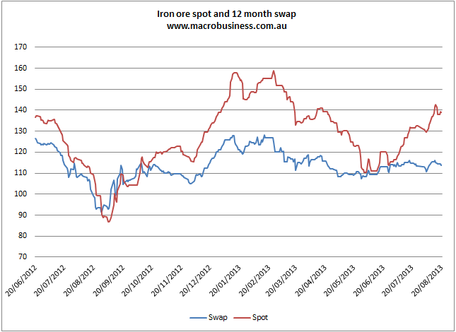 Find below the iron ore price table for August 20, 2013: