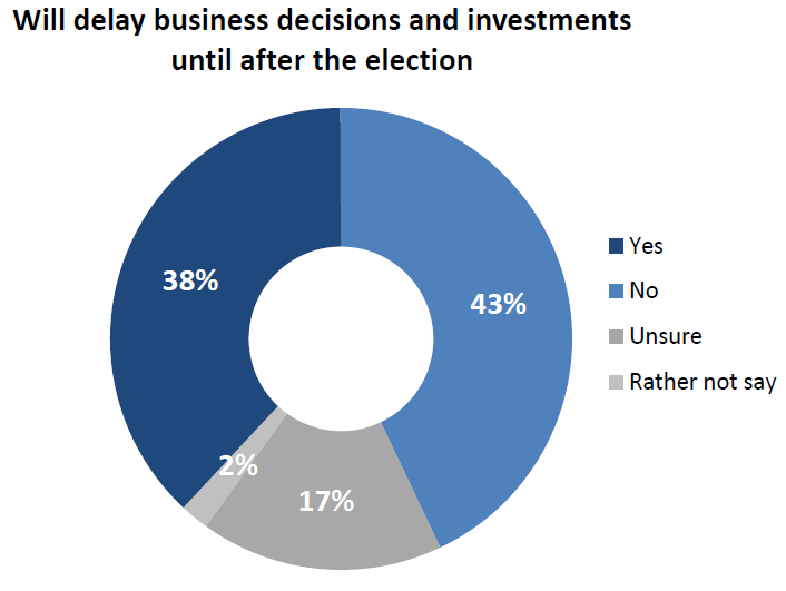 “As we await a period of sustained economic stability, it may be that the conclusion of the election is the event that kicks these initial findings on sentiment from stable to optimistic,” he added. According to D&B’s research, 38 per cent of businesses are likely to delay significant business decisions and investments until after the election, suggesting there could be a boost in activity to match the traditional Christmas period lift in consumer spending.