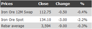 Find below the iron ore price table for September 6, 2013: