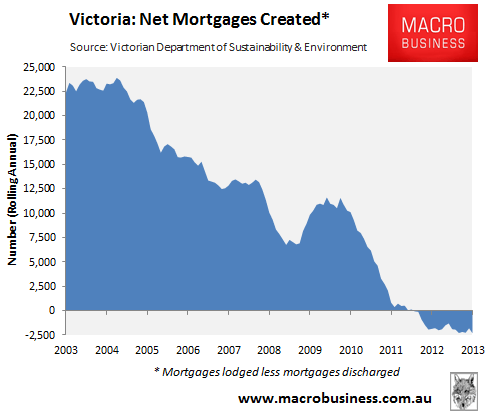 And below is the number of net new mortgages created, calculated by subtracting mortgage discharges from mortgage lodgements: