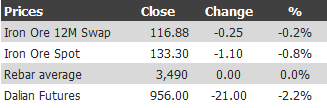 However the Dalian dip seems to already be placing pressure on spot. Six month futures are trading at $128 equivalent.