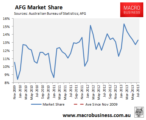 Now, a few significant caveats. AFG is taking market share over time so its figures are favourably distorted versus the broader mortgage market: