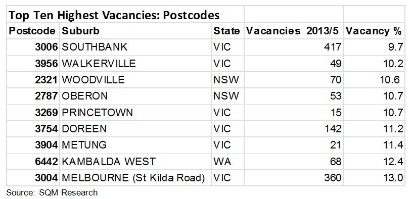 We know as well that much of this construction (all?) is aimed at the citizenship export sector, as well students. A quick glance at the vacancy rates around central Melbourne shows very high rates with Docklands, Melbourne and South Bank both above 7% and St Kilda Road at 17%.