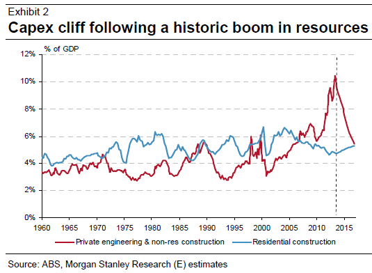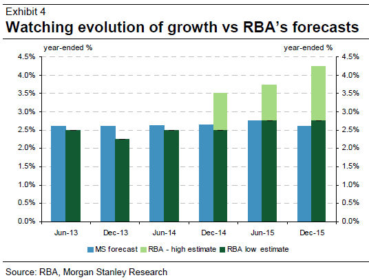 Leverage, the ‘cost of transition’: With the consumer likely to remain cautious and non-mining investment lagging, we focus on an interest rate-driven lift in housing activity and the potential for a publicly funded infrastructure program to provide pockets of growth in a sub-trend GDP environment. Importantly, we believe the RBA will tolerate some give-back of the recent improvement in household balance sheets as the cost of transitioning the economy without recession.