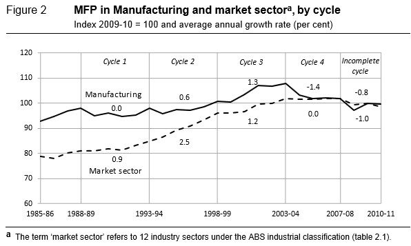MFP [multifactor productivity] has been declining since 2003-04. This has been one of the main contributors to the recent flat to declining productivity of the whole market sector of the Australian economy…