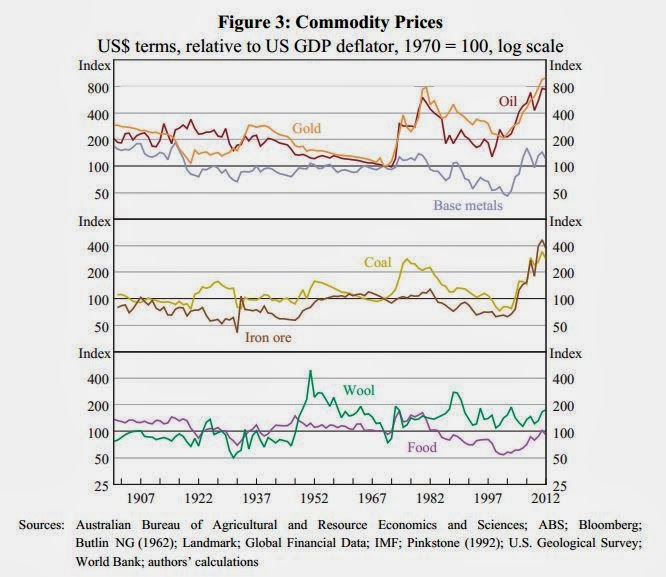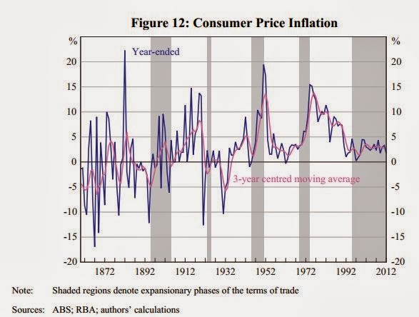 The Reserve Bank has recently published a historical comparison of the terms of trade in Australia entitled “Macroeconomic Consequences of Terms of Trade Episodes, Past and Present” by Tim Atkin, Mark Caputo, Tim Robinson and Hao Wang.